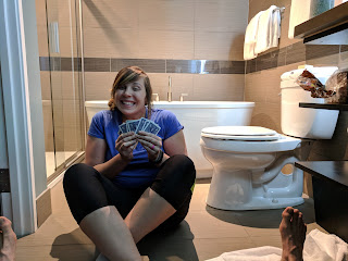 And Monica, also in the bathroom, playing with me. It was a VERY SMALL room, so we definitely couldn't stay out in the bedroom after the kids were in bed.
